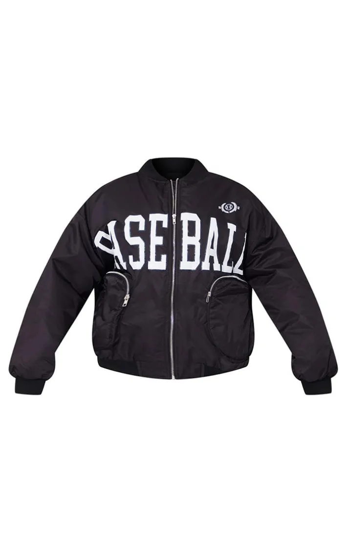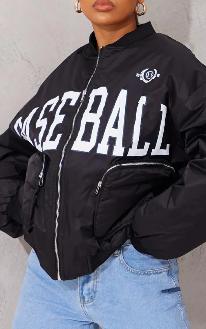 This season a bomber jacket is essential and we are loving this one. Featuring a black material with a ‘Baseball’ print and pocket detailing. Wear with a cropped tee, cargo jeans and fresh kicks for a look that will earn you some serious style points.