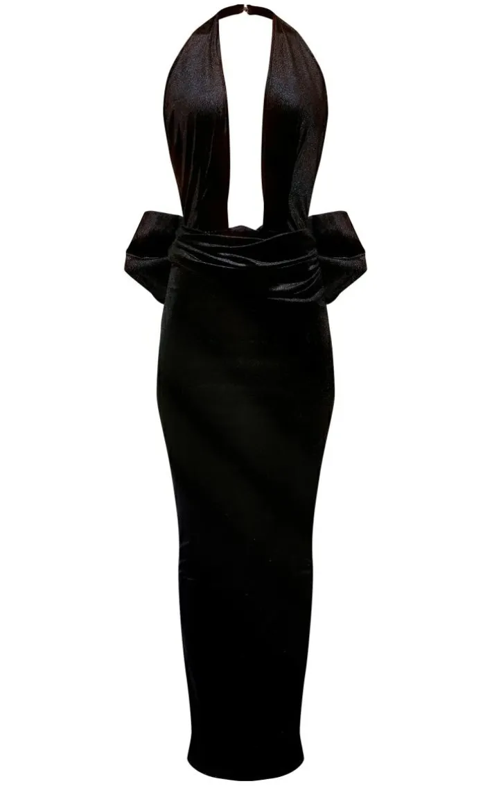 Got a special occasion coming up ? Then this black velvet halterneck bow detail maxi dress is here to solve all your styling dilemmas. It is made using a black velvet material with a bow detail and a halterneck design, what more could you want? Simply add your highest heels and simple accessories for a look no one will forget.