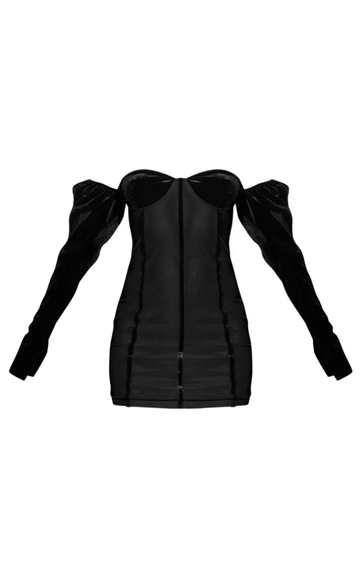 Get all glammed up this weekend with this black velvet mesh corset detail long sleeve bodycon dress. Brought to you in a black velvet mesh material for those luxe vibes and featuring a corset design for that chic touch, this bodycon dress is sure to tick all the boxes. Perfect for the upcoming party season, this bodycon dress is everything you’re looking for and more. Team with silver accessories and diamante heels for a look that is sure to make a statement.