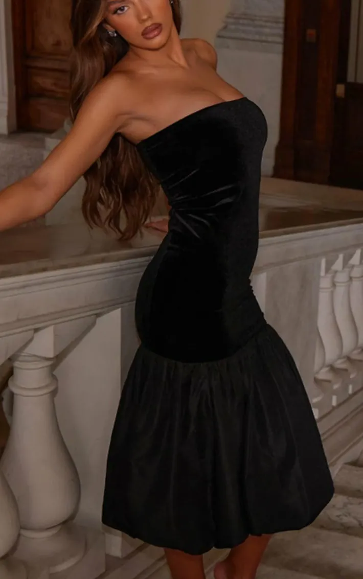 You what to wear dilemmas have finally been solved wit this black velvet puffball midaxi dress. Brought to you in a black velvet material with a puffball design and a midaxi length, you won’t be able to resist. Team this dress with your go-to heels and gold hoop earrings for a look that will get everyone talking.