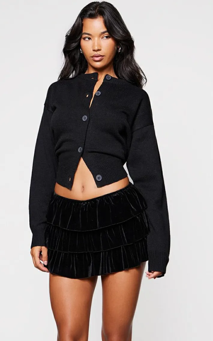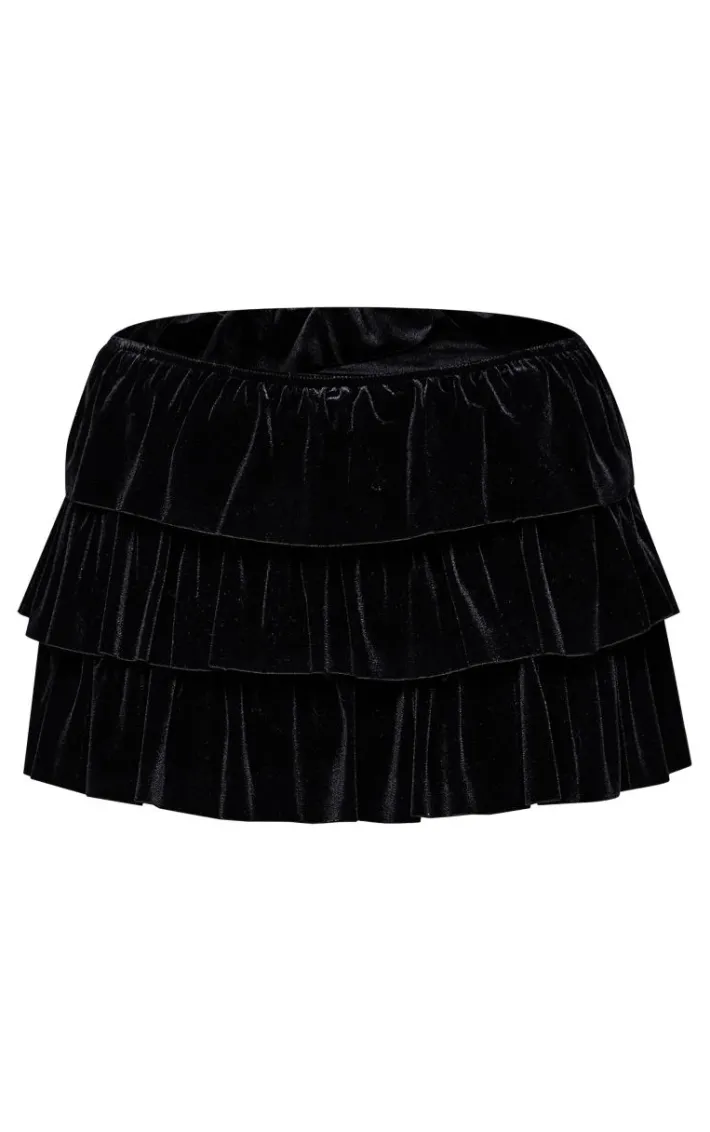 Take on the new season in style with these black velvet rara bloomer shorts. Brought to you in a versatile black shade, with a luxe velvet material and a rara bloomer style, this is all the new you need for the season ahead. Style with black button up cardigan and a pair of court heels to elevate the look.