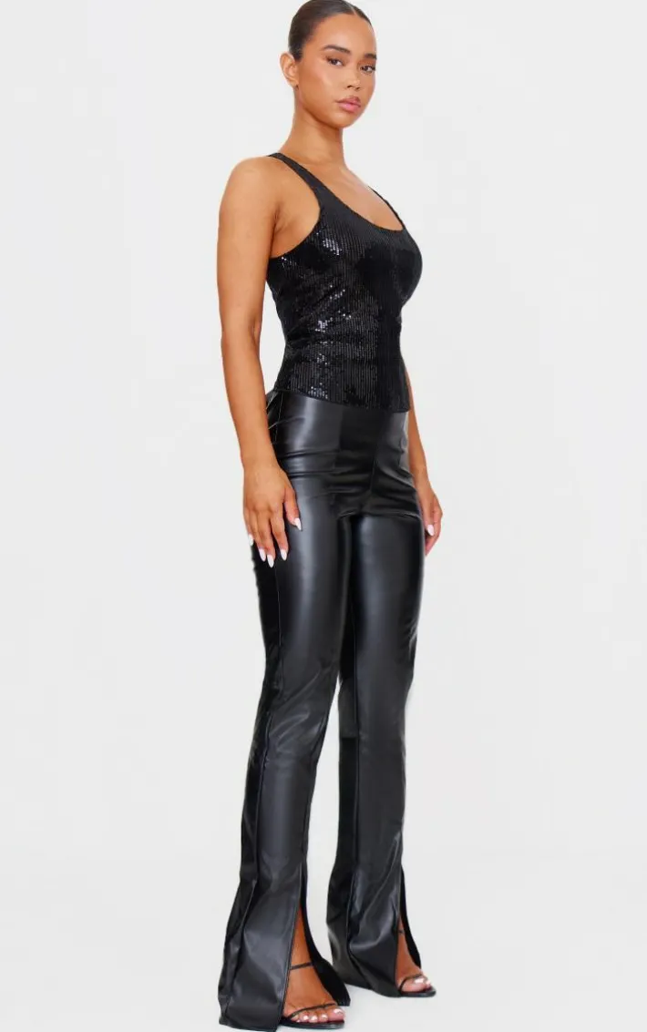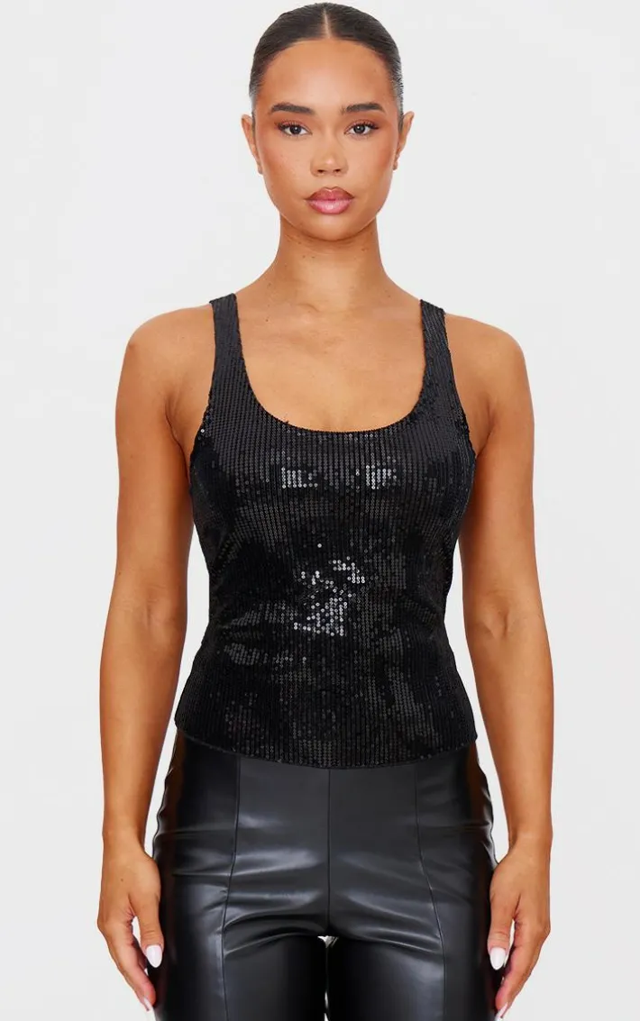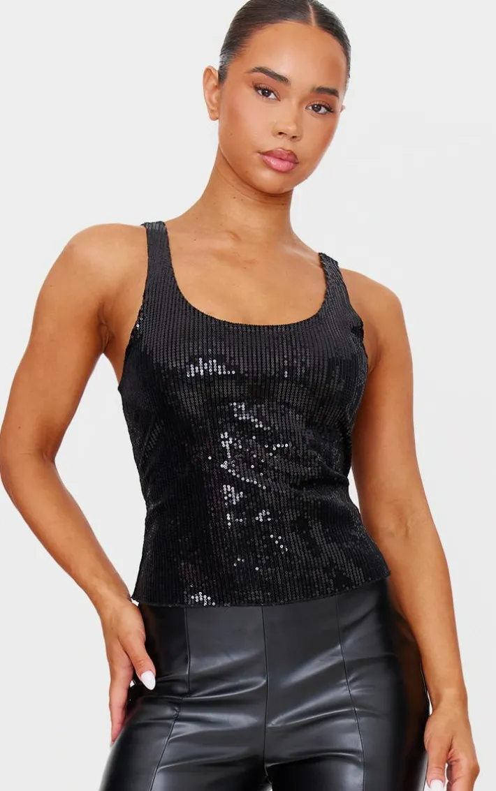 This black velvet sequin scoop neck vest is a must have for your weekend collection. Brought to you in a neutral black tone, with a luxe velvet material, sequin design and scoop neck line, take a chance on this for a look you won’t regret. Team with some hot pants and a pair of tights to complete the look.