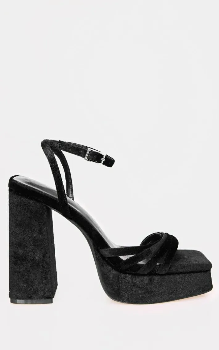 Step into style this season with these black velvet square toe strappy block platform heels. Brought to you in a black hue velvet material with a square toe design and strappy detail, these block platform heels are all the new you need. Style with a chic mini dress and simple accessories to have all eyes on you.