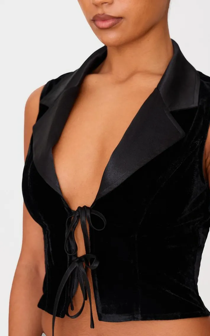 We’re loving this black velvet tie front vest for a look that won’t age. Brought to you in a classic black hue, with a luxe velvet material and a flattering tie front design, what’s not to love? Style effortlessly with a pair of heels and matching velvet flare pants to complete the look. It’s a yes from us.