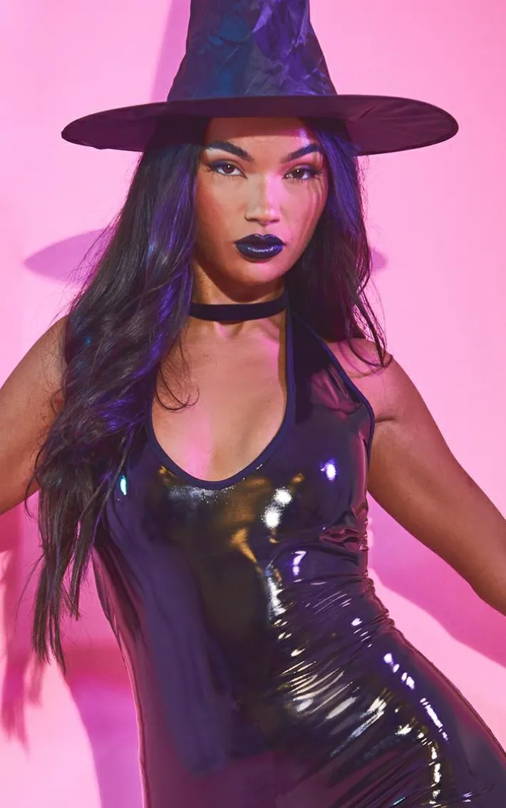 This black vinyl halterneck bodycon mini dress is sure to add a little edge to your weekend wardrobe. Brought to you a black vinyl material with a halterneck style and a plunge neckline. We love this paired with simple accessories and tie-up heels for a night out.