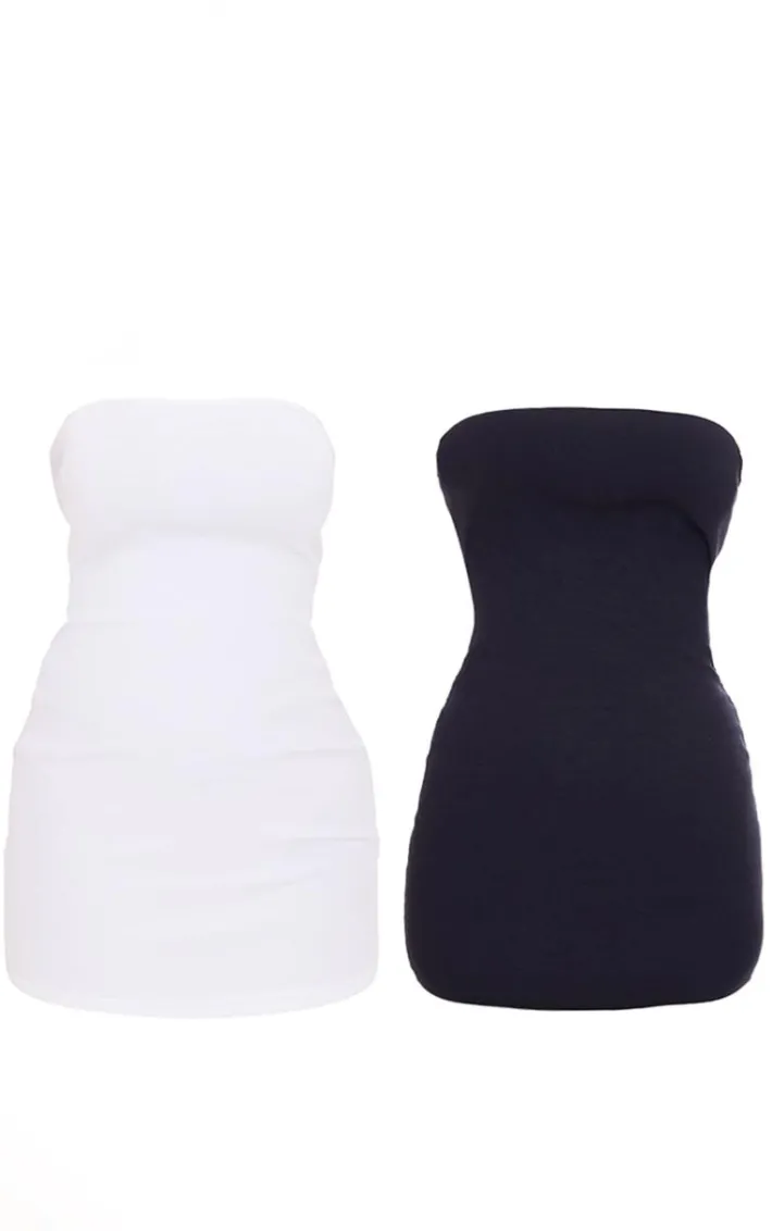 Give your new season wardrobe the upgrade it deserves with this black and white 2 pack rib bandeau bodycon dress. This pack includes 2 bodycon dresses in a black and white rib material with bandeau designs, how can you resist? Simply pick your fave bodycon dress and style with sandals and sunglasses for an effortless look we’re loving.
