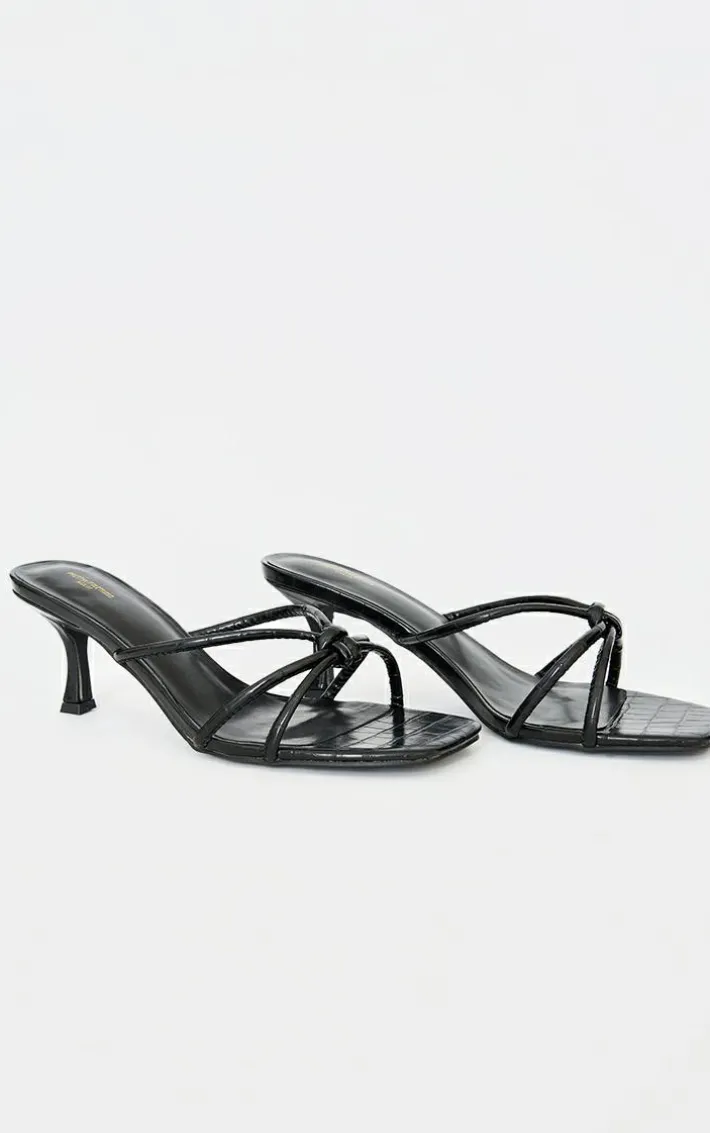 Slip on these black wide fit croc PU square toe knotted heeled mules for the ultimate glam accessory. With a chic heel that accentuates any look, a wide fit square design and knotted PU feature, they’re a must-have for your wardrobe. What are you waiting for?