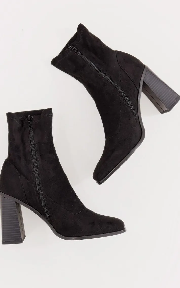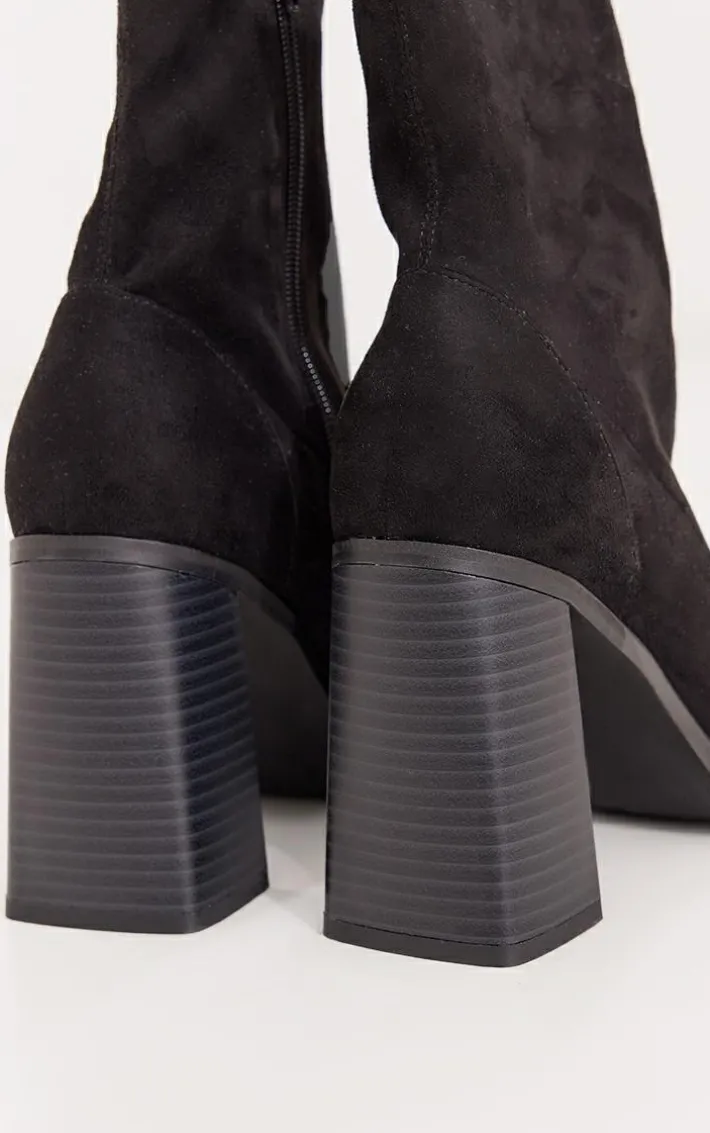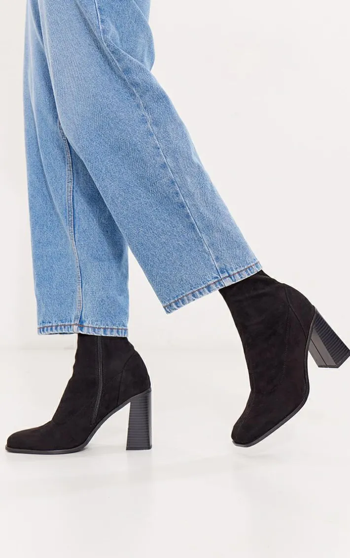 Level up your outfit of the day with these black wide fit faux suede block-heeled sock ankle boots. Brought to you in a black faux suede material with a block heel design and a wide-fit, these ankle boots are sure to be at the top of everyone’s hitlist. If you’re looking to add that extra edge to your look this season, these ankle boots are everything you’re looking for and more.