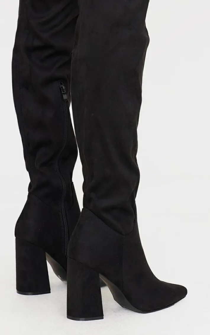 We are loving these boots for your new-season wardrobe. Featuring a black material with a wide fit design, pointed toe detailing, and over the knee design. Team with your outfit of the day.