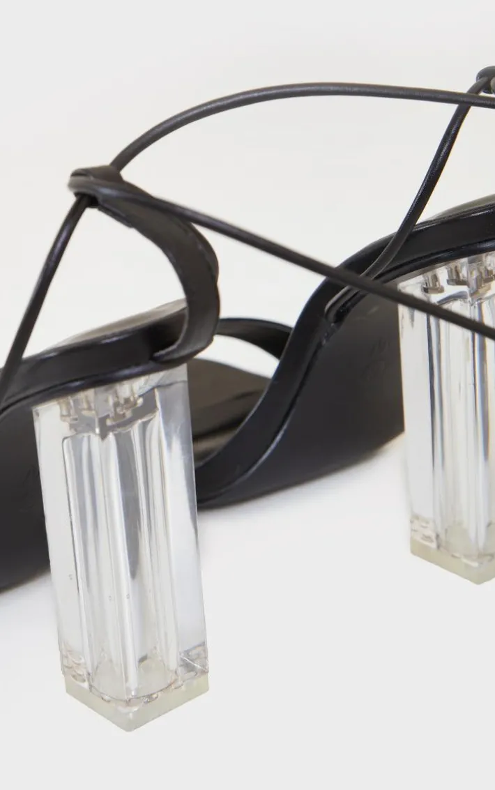 These block heels are perfect for any occasion. Featuring a clear chunky heel and lace up detail, we’re obsessed.