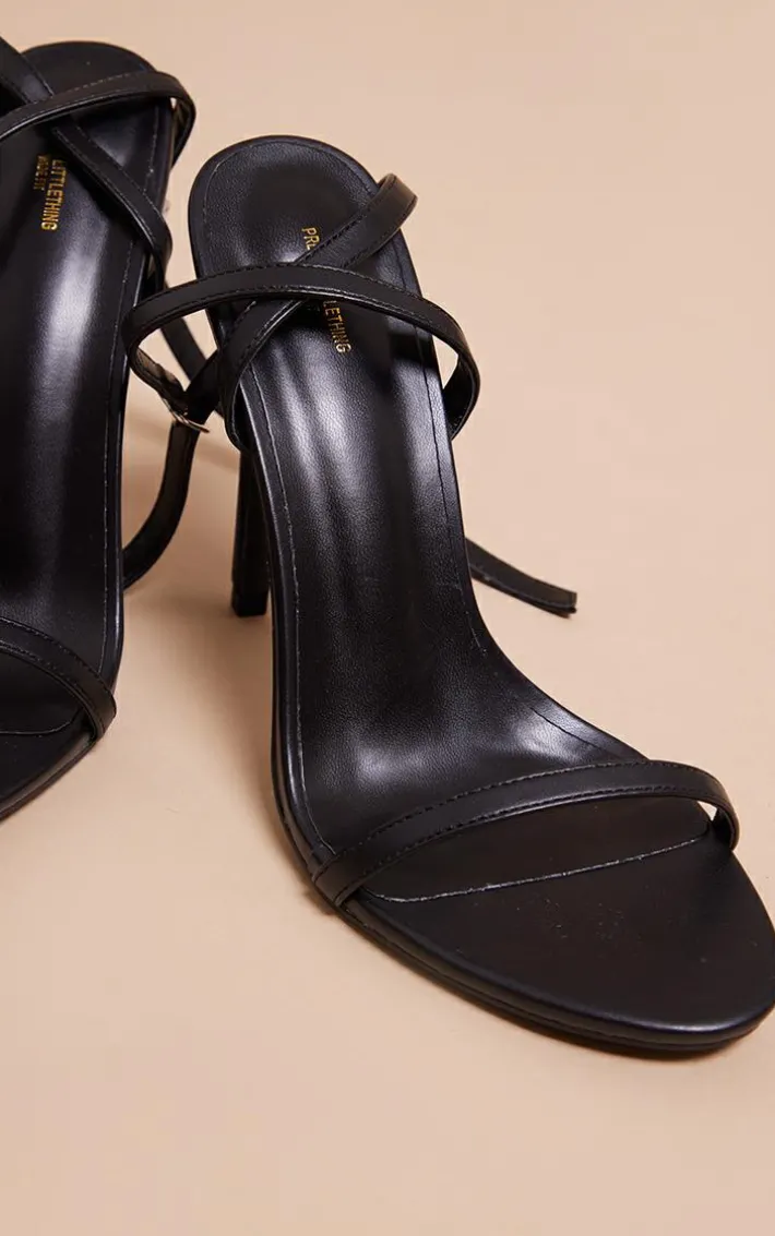 These heels are a staple piece for your weekend wardrobe. Featuring a black hue PU material with a wide fit, a round-toe design and a barely-there style, team these with your weekend-worthy combo.