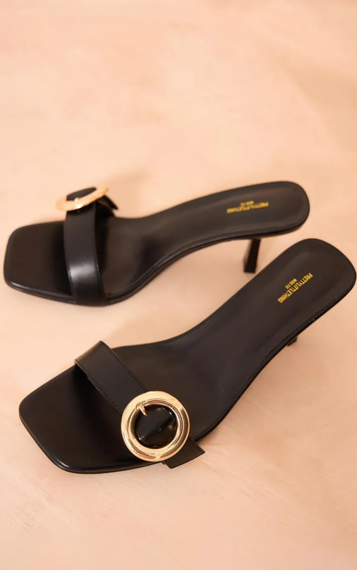 Take your look toa whole new level with these black wide fit PU square toe buckle detail low heeled mules. These mules are brought to you in a black PU material with a square toe, a buckle fastening and a wide fit, what’s not to love? Style these with your outfit of the day for a glam finish.