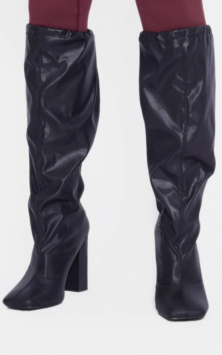 Step up your style game this season with these black wide fit PU square toe knee high block heel toggle boots. Made from a black PU material with a wide fit and a knee-high design, these boots are the ultimate styling staple this season. Whether you dress them up or down, you are sure to impress in these boots.