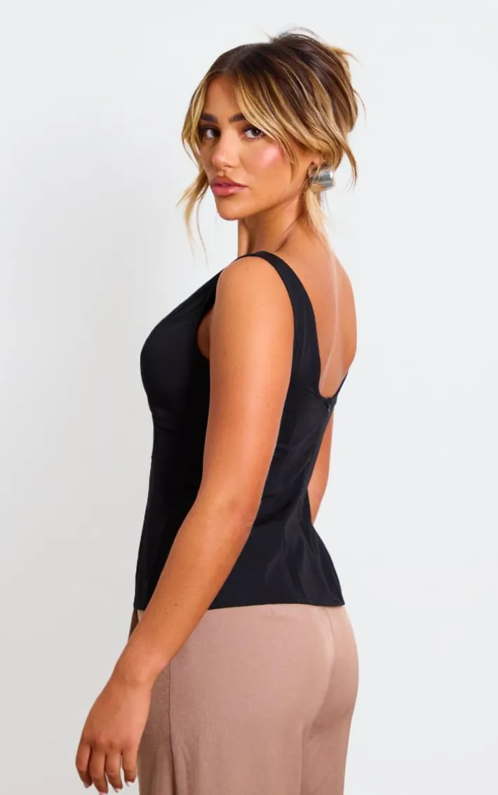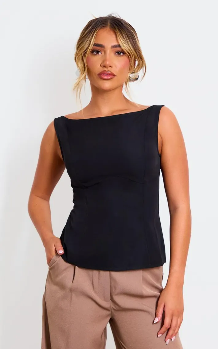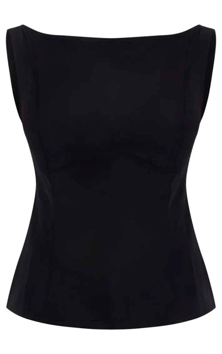Give your outfit a subtle touch of chic with this black woven boatneck scoop back long top. Brought to you in a black woven material with a boat neckline and a scoop back design, what more could you ask for? Style this black top with wide leg pants, heels and a mini bag for a look that is perfect for your weekend plans.