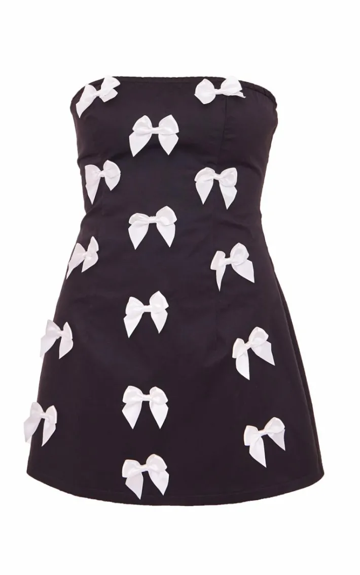 You can’t go wrong with a little black dress and this black woven bow detail bandeau shift dress is here to solve all of your weekend wardrobe dilemmas. Brought to you in a black hue woven material with a bandeau neckline and bow detailing for that extra touch of glam, how can you resist? Style this shift dress with heels and some glam accessories to complete the look.