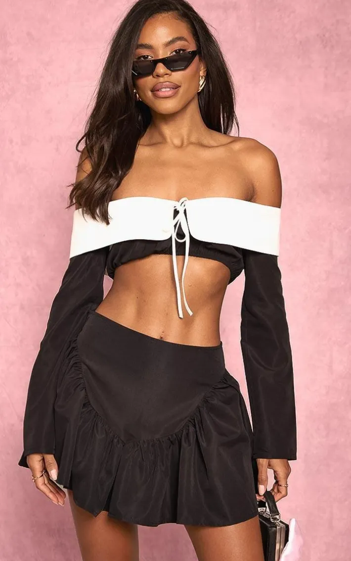 Set major trends with this black woven contrast fold over collar top. Brought to you in a black woven material with a contrast fold over collar adding all the choc vibes to your weekend wardrobe. This top is sure to solve all of those what to wear dilemmas. Team with your fave accessories and a mini skirt for a fool proof finish.