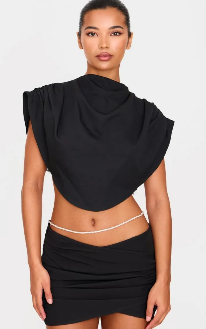 Introducing this black woven diamante draped front high neck top to your new season wardrobe. Brought to you in a black woven material with a draped design, a diamante detail and a high neck fit, what more could you want? Team this top with a mini skirt and your fave heels for an effortlessly chic finish.