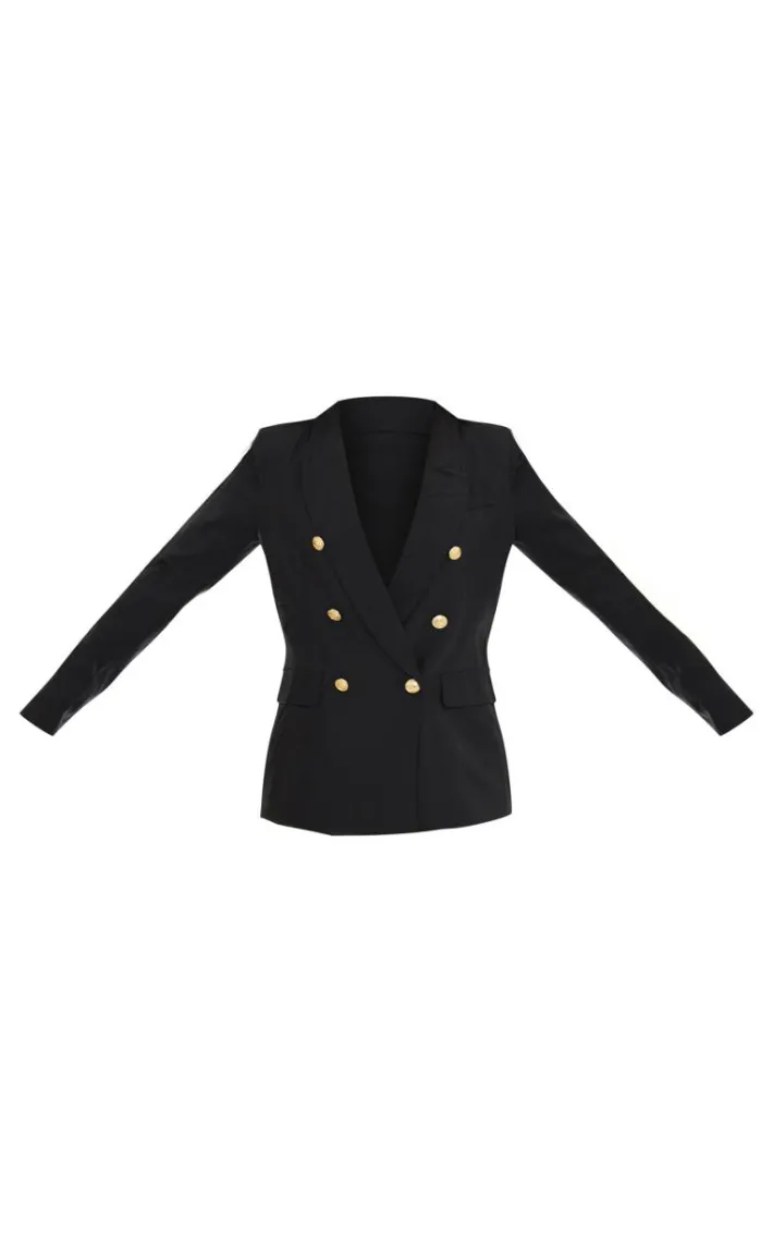 Go for all the luxe vibes this season with this black woven double breasted military style blazer. Brought to you in a black woven material with a double breasted design and a military style, this blazer is the perfect versatile piece to dress up or down. Team it with some denim shorts, a corset top and your fave accessories for a chic, weekend-ready fit.