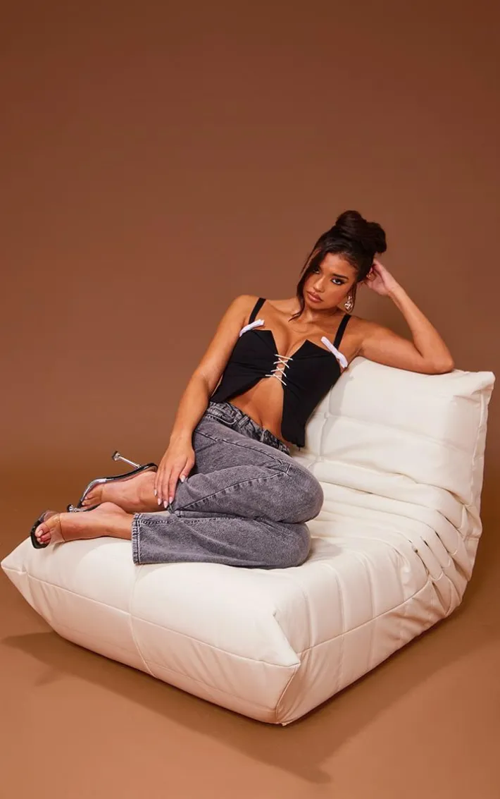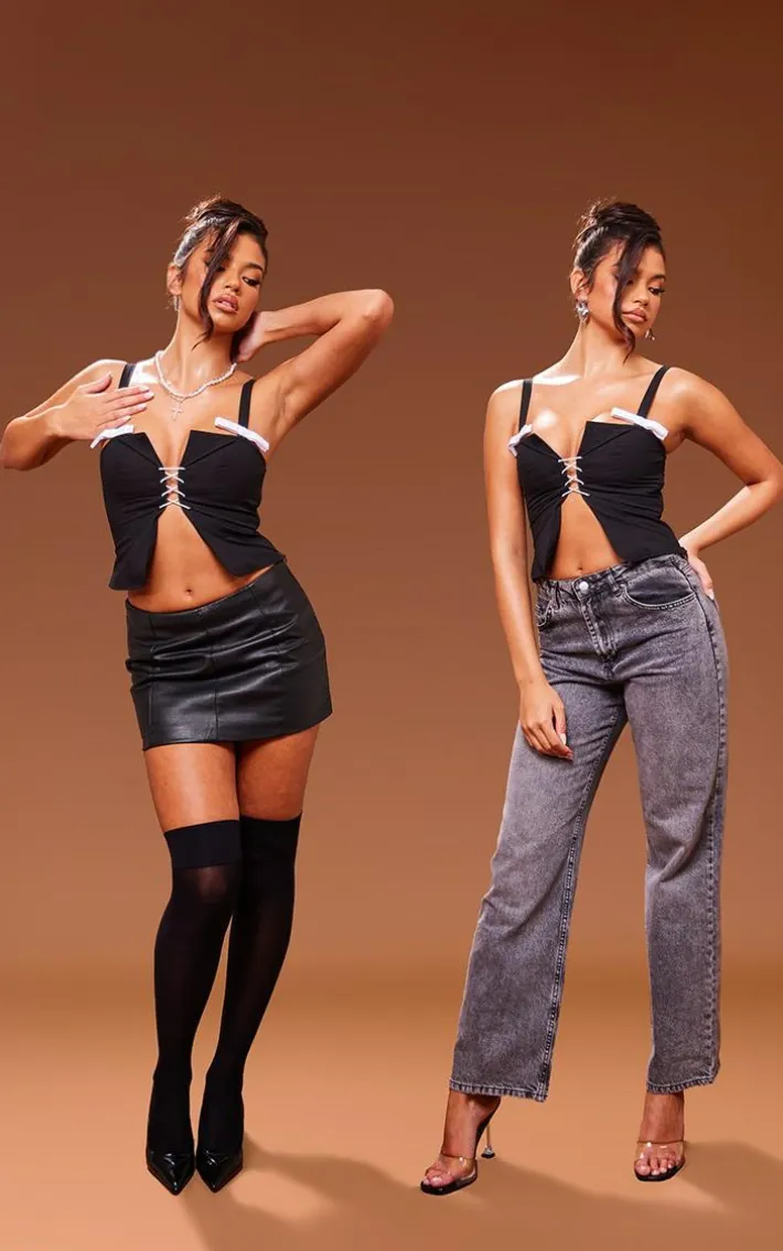 Get ready to make a serious style statement in this black woven lace up front bow detail top. Brought to you in a black hue woven material with a lace up front design and bow detailing for that extra touch of glam, you really can’t go wrong. Style this black top with a faux leather skirt and knee length boots or your go-to pair of jeans and clear strap heels, you really can’t go wrong.
