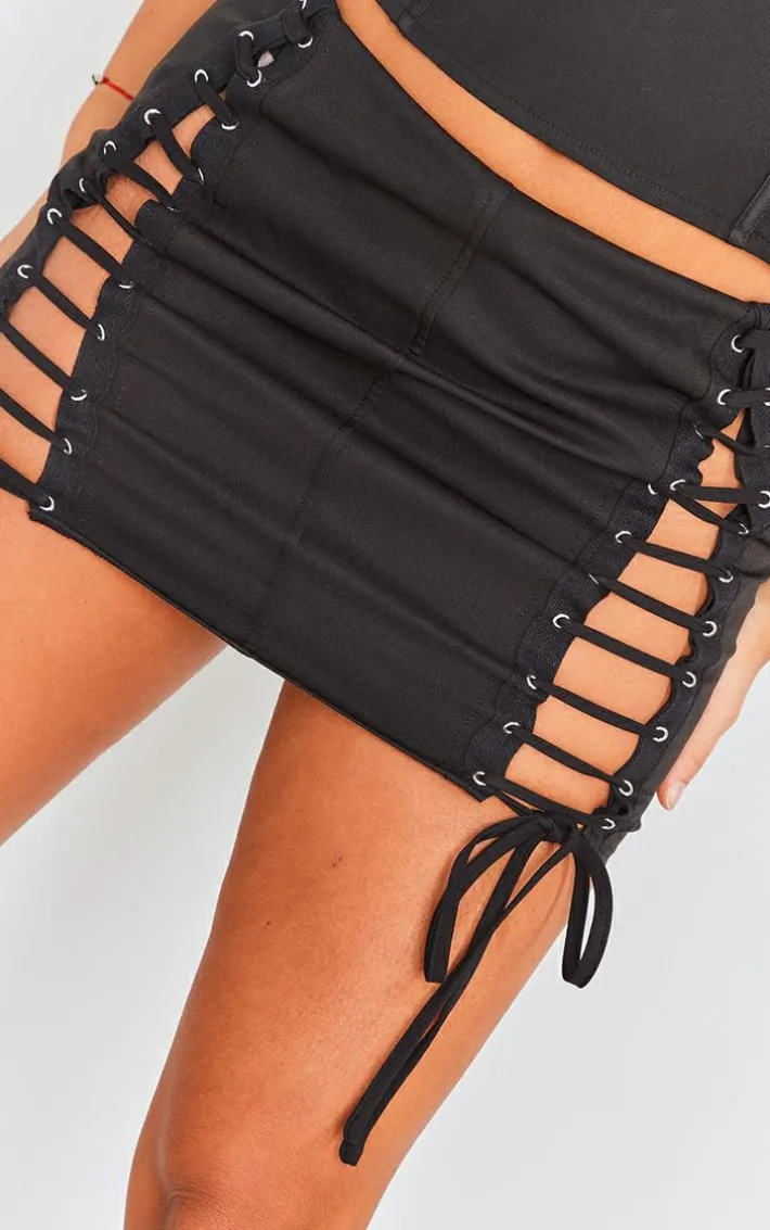 Got plans for the weekend ? Then you’ll want to add this black woven lace up mini skirt straight to your basket. Made using a black woven material with a lace-up design and a figure-flattering fit, it’s a definite yes from us. Style this mini skirt with a matching hue top, tie-up heels and simple accessories for a look no one will forget.
