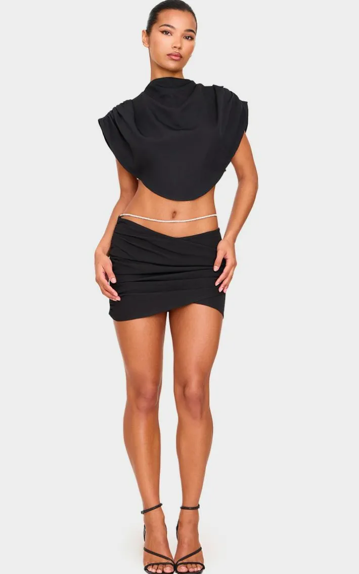 Turn heads and get hearts racing with this black woven layered diamante micro mini skirt. Brought to you in a black woven material with a layered design, a diamante detail and a micro mini length, what more could you want? Team this mini skirt with the matching crop top and your fave heels to make a statement this season.