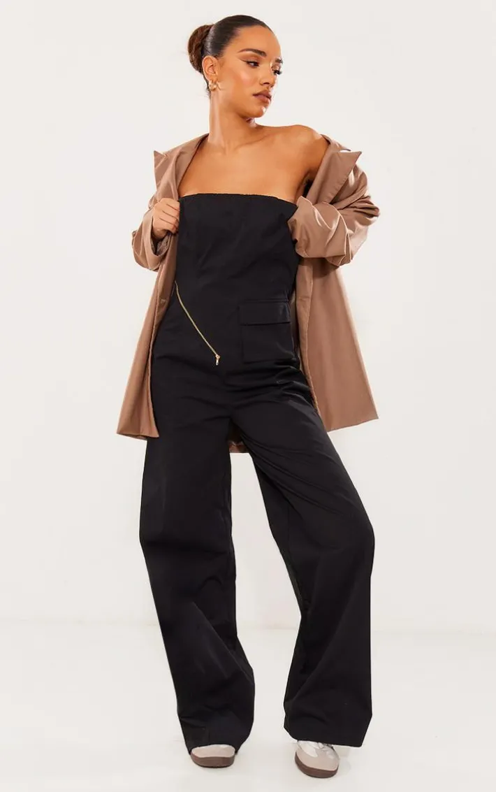 Take your outfit of the day that extra mile with this black woven pocket detail bandeau jumpsuit, we’re seriously obsessed. It is made using a black woven material with pocket detailing and a bandeau style, what more could you want? Team this woven jumpsuit with your fave sneakers and simple accessories for a look everyone will want.