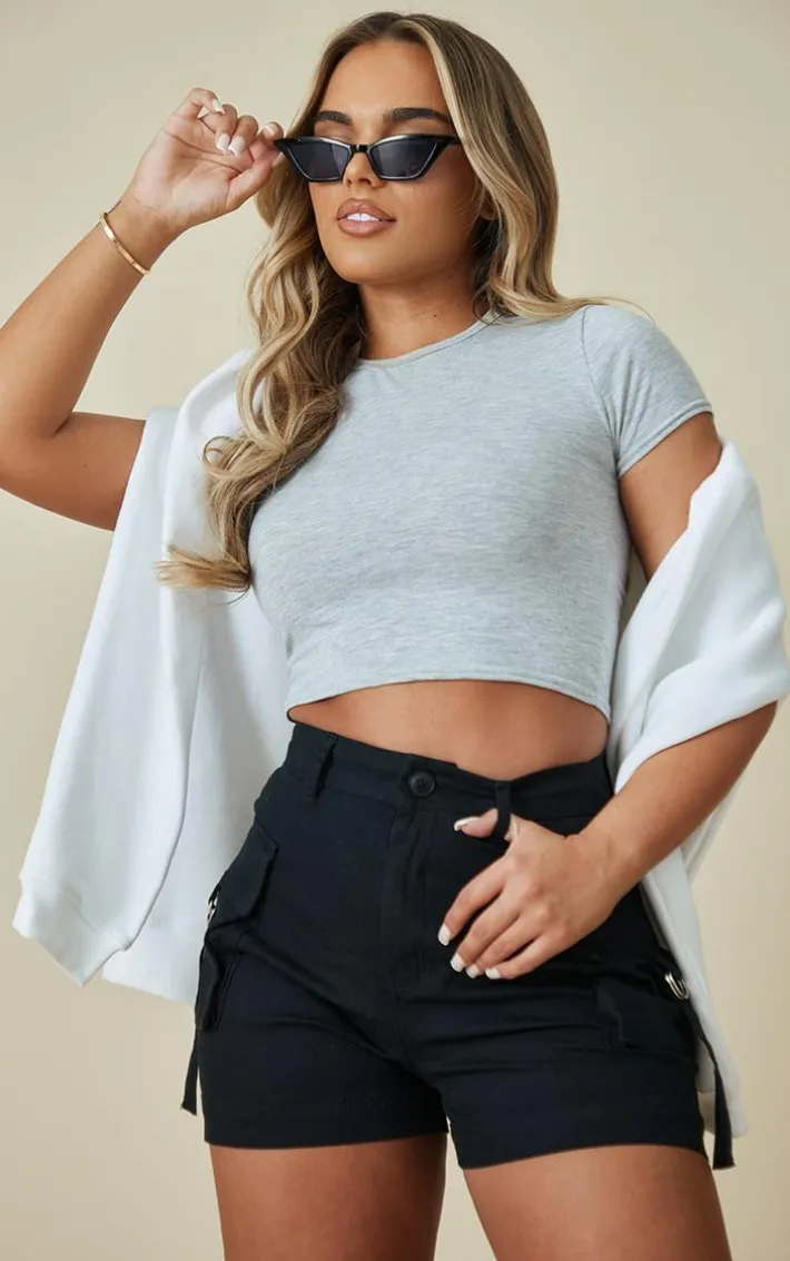 These black woven twill pocket detail cargo shorts are a definite must-have this season and are sure to get everyone talking. Made from a black woven twill material with cargo pocket details, a high waist and a figure-flattering fit, what’s not to love? These shorts are at the top of our hitlist this season doll with their on-trend design. For the ultimate off-duty look add a basic crop top, a hoodie, and chunky sneakers.