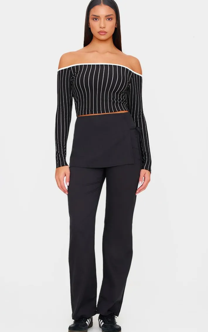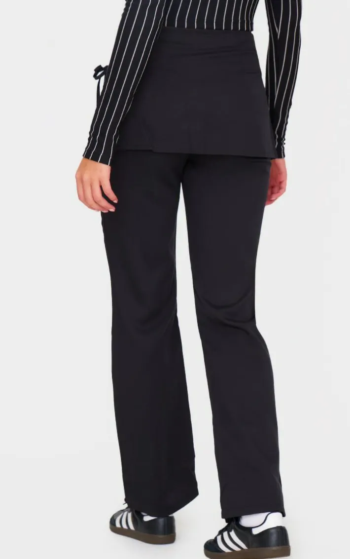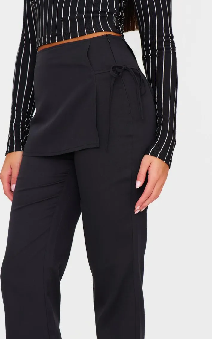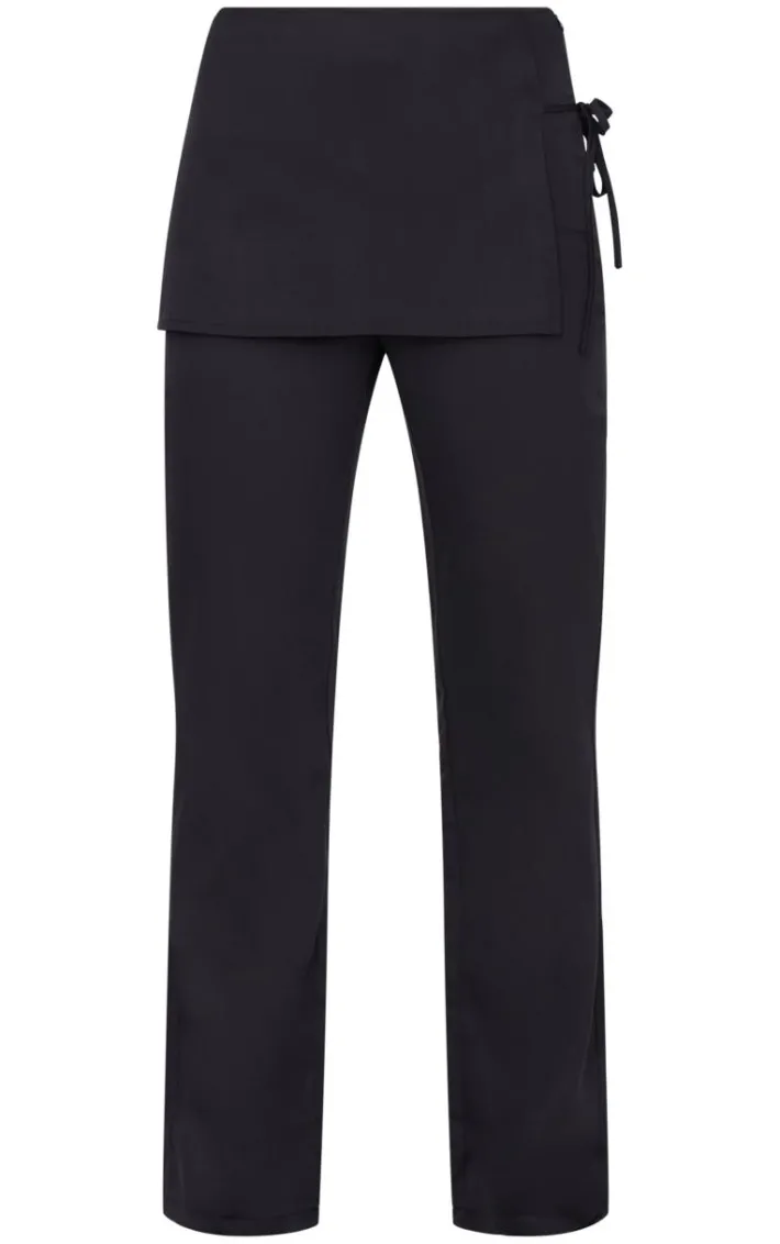 Keep it chic with these black woven wrap tie skirt straight leg pants. Brought to you in a versatile black hue, with a luxe woven material and a wrap tie skirt design, these pants are sure to get you noticed. Style with a pinstripe top and sneakers to complete the look.