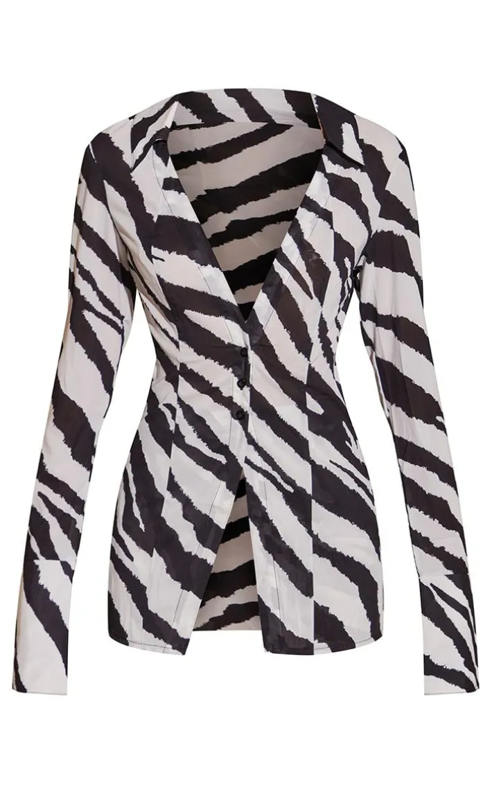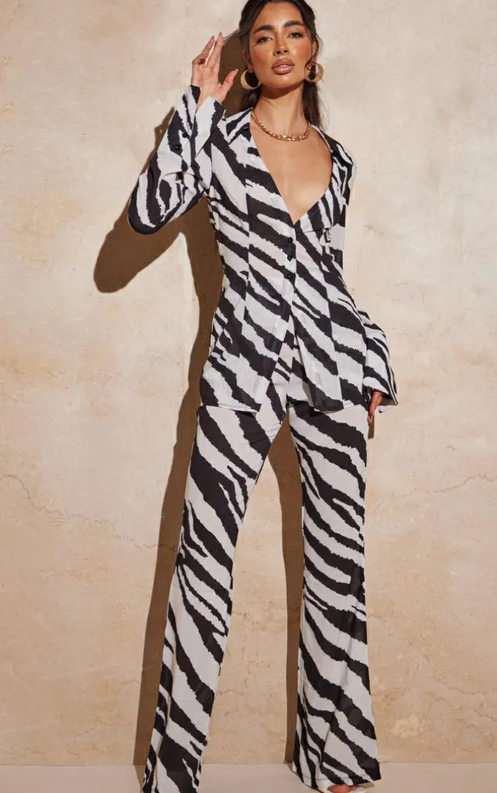 This shirt is sure to bring out all the fierce vibes this season. Featuring a black zebra print chiffon material with a fitted design, what’s not to love?Add the matching pants and chic accessories for a well deserved update.
