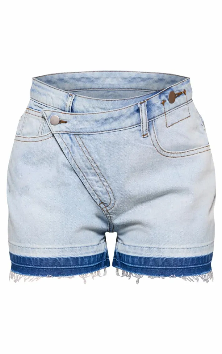 Take your look to the next level with these bleach wash asymmetric waistband frayed hem denim shorts. These shorts are brought to you in a black wash denim material with a frayed hem and a waistband design, what’s not to love? Style these shorts with a crop top, box-fresh kicks and accessories for the ultimate combo.