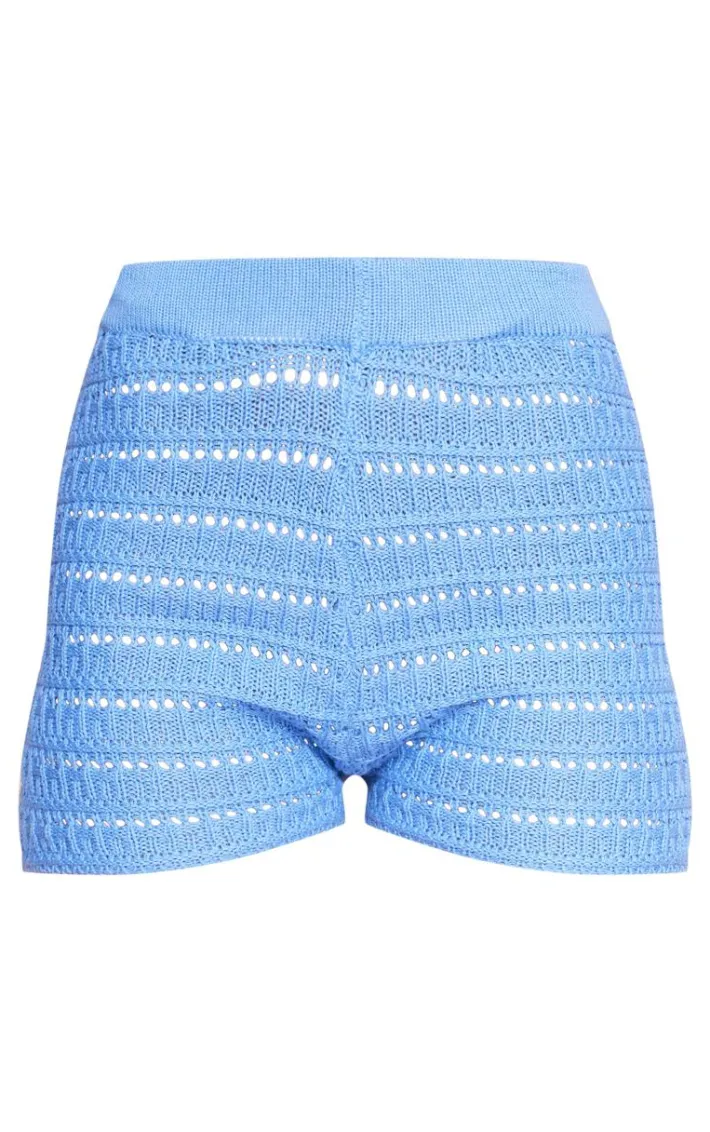 Amp up your new season wardrobe with these blue crochet knit mini shorts. Brought to you in a blue hue crochet knit material with a flattering mini fit, how can you resist? Pair these mini shorts with the matching top, sandals and oversized sunglasses for a look that is perfect for your next vacay and beyond.