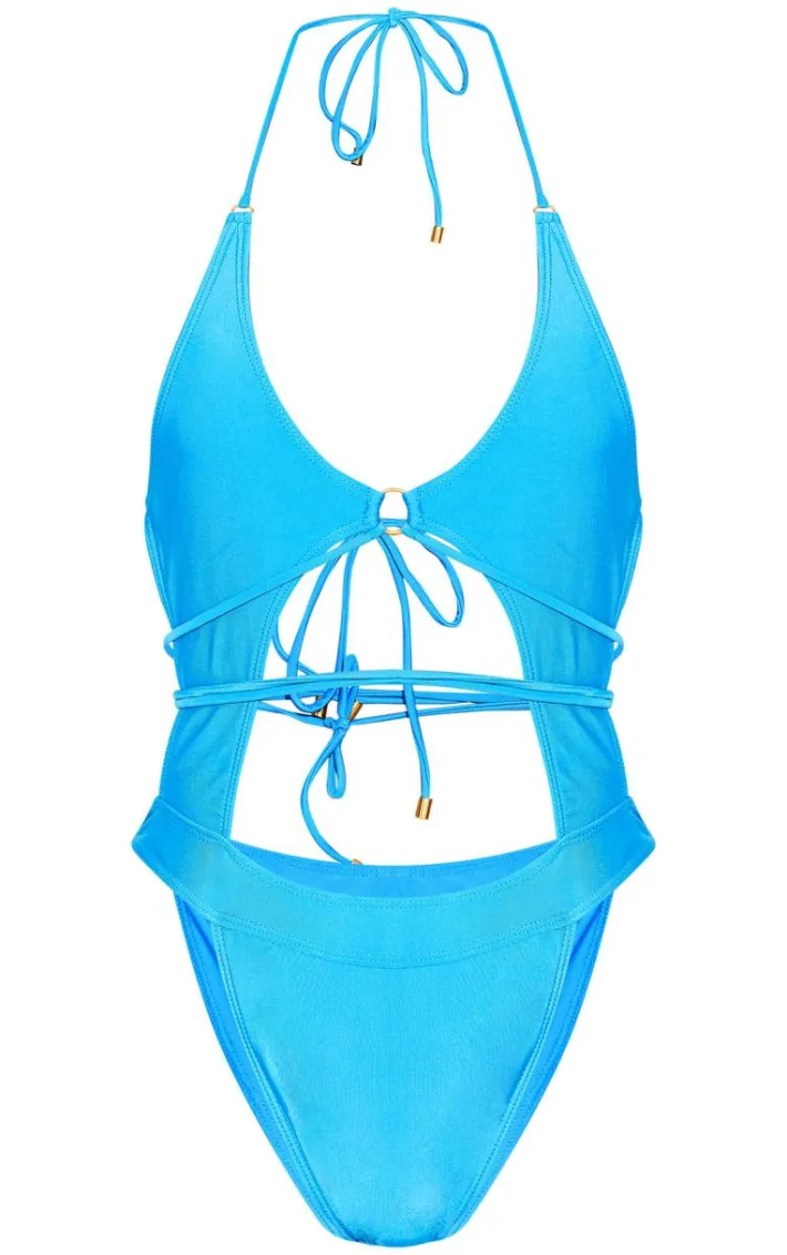 Get your glow on in this blue cut out tie waist swimsuit. Brought to you in a blue hue material with a cut out design and tie waist detail, this swimsuit is calling your name. ‘Add to bag’ has never looked so good. Style with pool-side sandals and your fave accessories to turn heads this vacay season.