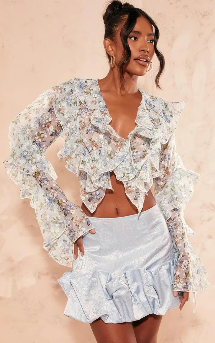 Go for all the luxe vibes this weekend with this dreamy blue floral satin puffball hem mini skirt. With a blue satin material, a floral print and a puffball hem, you’re sure to have heads turning in this mini skirt. Pair this satin skirt with a statement top, heels and your go to accessories for a look we just can’t get enough of.