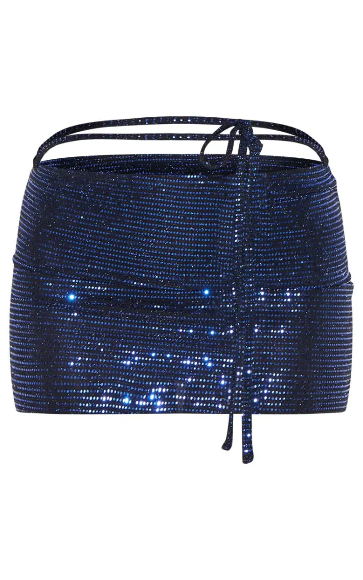 When you weekend outfit is in need of an extra touch of luxe, we’ve got you covered with this blue glitter lurex lace up detail mini skirt. Brought to you in a blue glitter material with lace up detailing and a mini length, how can you resist? Style this mini skirt with a crop top, heels and gold accessories for a look that will make you stand out from the rest.