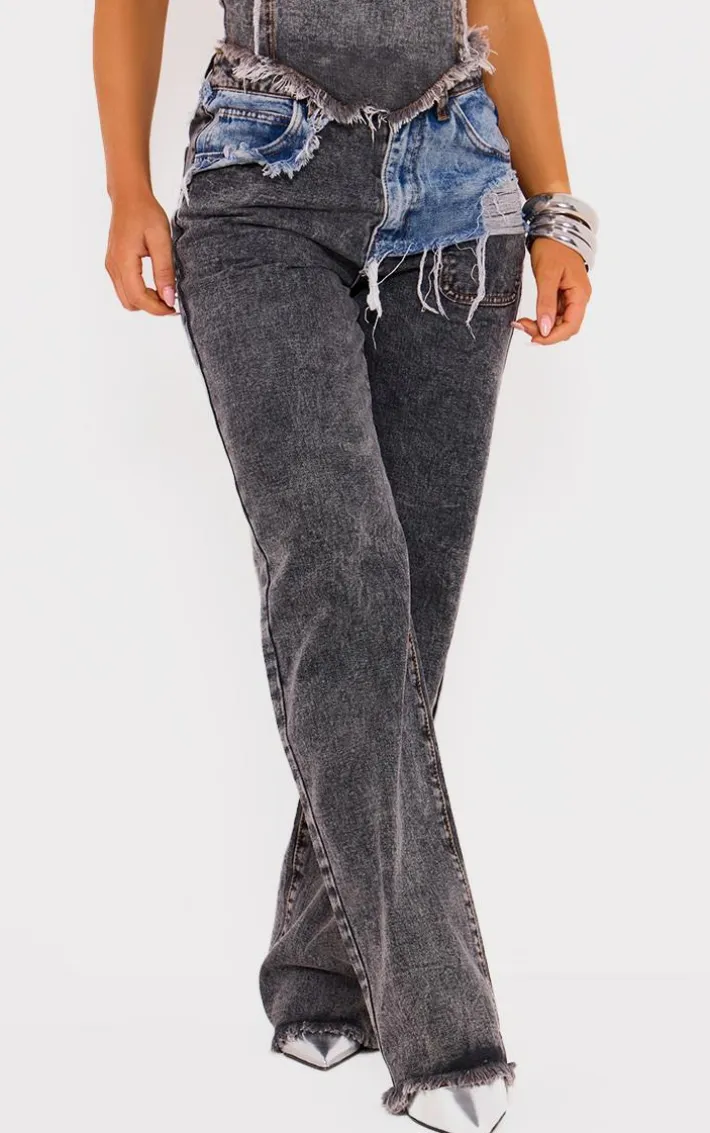 Add an edge to your denim collection with these blue grey layered raw hem straight leg jeans. Brought to you in a blue grey denim material with a layered design, raw hem detailing and a straight leg fit, how can you resist? Style these straight leg jeans with the matching top, statement heels and silver bangles for a look that is sure to make heads turn.