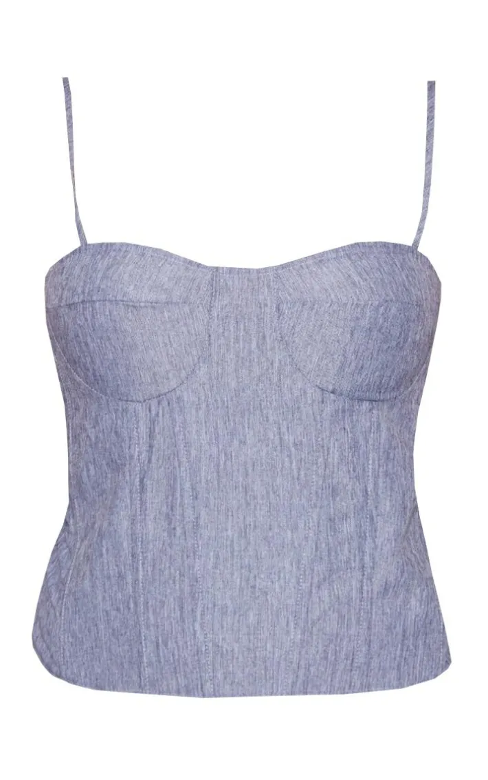 This blue linen look structured corset top is sure to flattering your shape in all the right places. Made from a blue hue linen look material with a structured corset design and adjustable straps, how can you resist? We are loving this corset top styled with the matching skirt, clear strap heels and statement accessories for a seriously chic look that is perfect for those weekend plans and beyond.