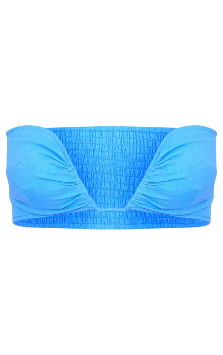 Add some statement hues to your weekend wardrobe with this blue linen look v bar bralet. Brought to you in a blue linen look material with a v bar design we are seriously obsessing over this unreal bralet. Its v bar detail addtouch of luxe like no other. Team with the matching skirt and your fave gold accessories for a fool proof finish.