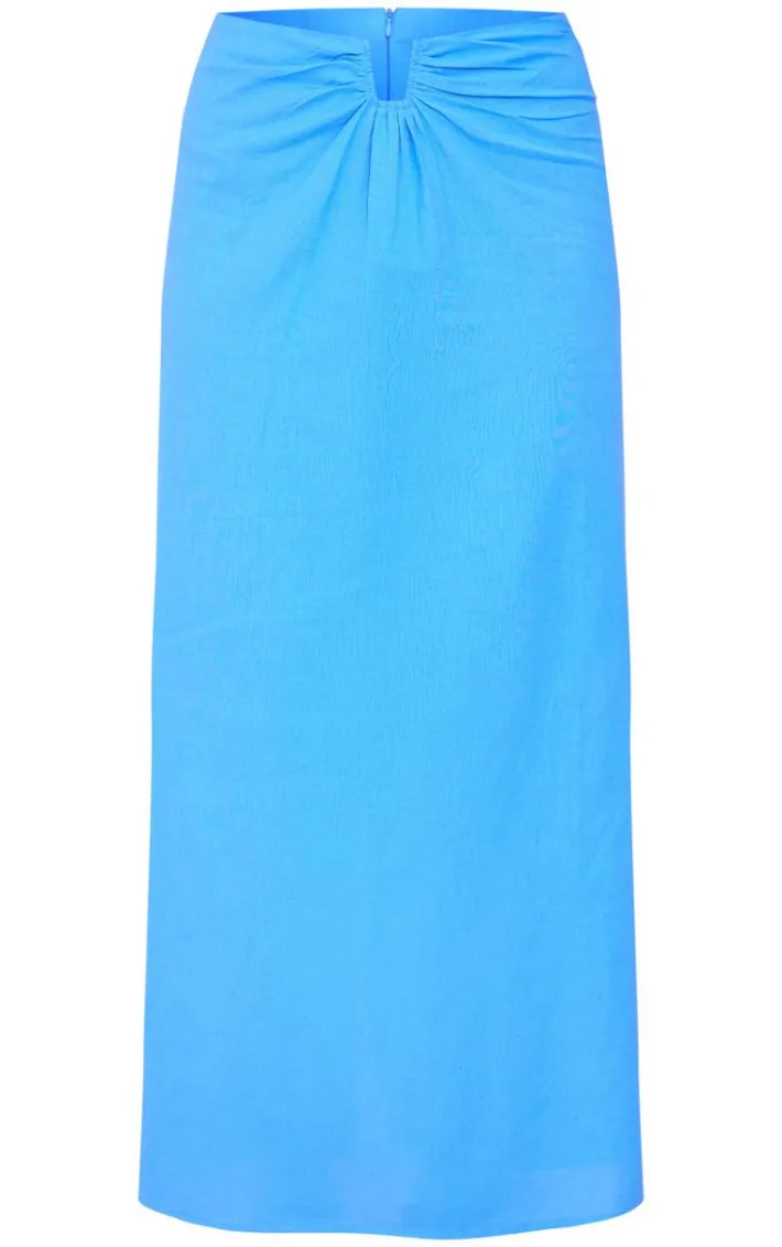 Take the stress out of weekend styling with this unreal blue linen look v bar maxi skirt. Brought to you in a blue linen look material with a v bar detailing and a maxi length, you really can’t go wrong with this statement skirt. Style with your fave heels, gold accessories and the matching crop top for a look that will have eyes on you for all the right reasons.