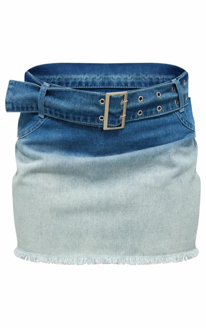 Take any look to the next level with this unreal blue ombre denim belted mini skirt perfect for your everyday styling and beyond. Brought to you in a blue denim material with an ombre design and a belted detail, we simply can’t get enough. With its mini length and belted detailing, this dreamy skirt is sure to be your new go-to. Style with the matching skirt and a pair of court heels for a look that we can’t get enough of.
