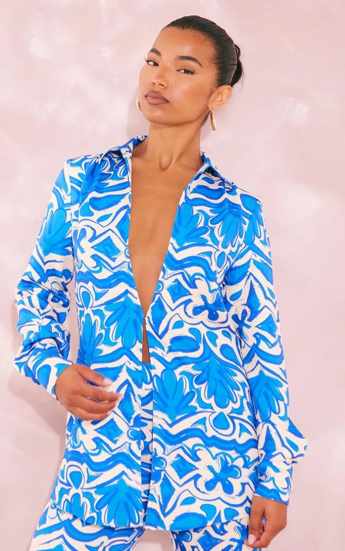 Get ready to make heads turn in this blue oversized print shirt. Brought to you in a blue hue material with a dreamy print design that is sure to make you stand out from the crowd and an oversized fit, what more could you ask for? We are loving this oversized shirt styled with the matching pants, heels and some glam accessories for a weekend-worthy look like no other.