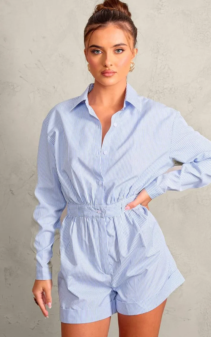 Everyday styling has never been more simple than with this blue pinstripe button up shirt detail romper, it’s a definite yes from us whatever your plans. This romper features a blue pinstripe material with a button up design and a relaxed fit, you’ll be adding it straight to your basket. Pair this pinstripe romper with sandals and your fave accessories for a look that will never miss.