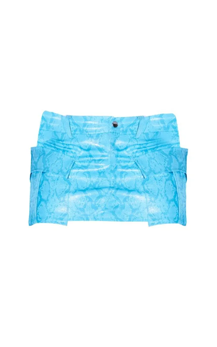 Add some statement hues into your weekend wardrobe with this blue snake effect faux leather pocket micro mini skirt. Brought to you in a blue faux leather material with a snake effect design, what more could you want? Its pocket detailing and micro mini length are all you need to stand out from the rest. Team with a white tee, knee high boots and an oversized jacket to take the look from 0-100 instantly.