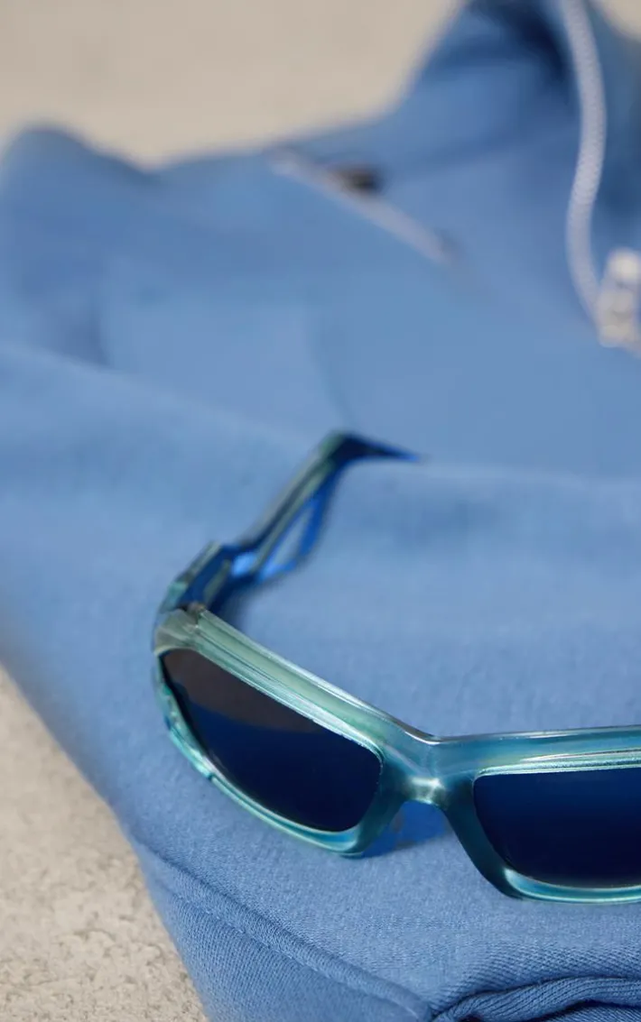 Take your outfit of the day to a whole new level with these blue sporty zig zag frame sunglasses. With a blue frame in a sporty zig zag design, how can you not be obsessed? Style these sporty sunglasses with any look for a statement finishing touch to your outfit.