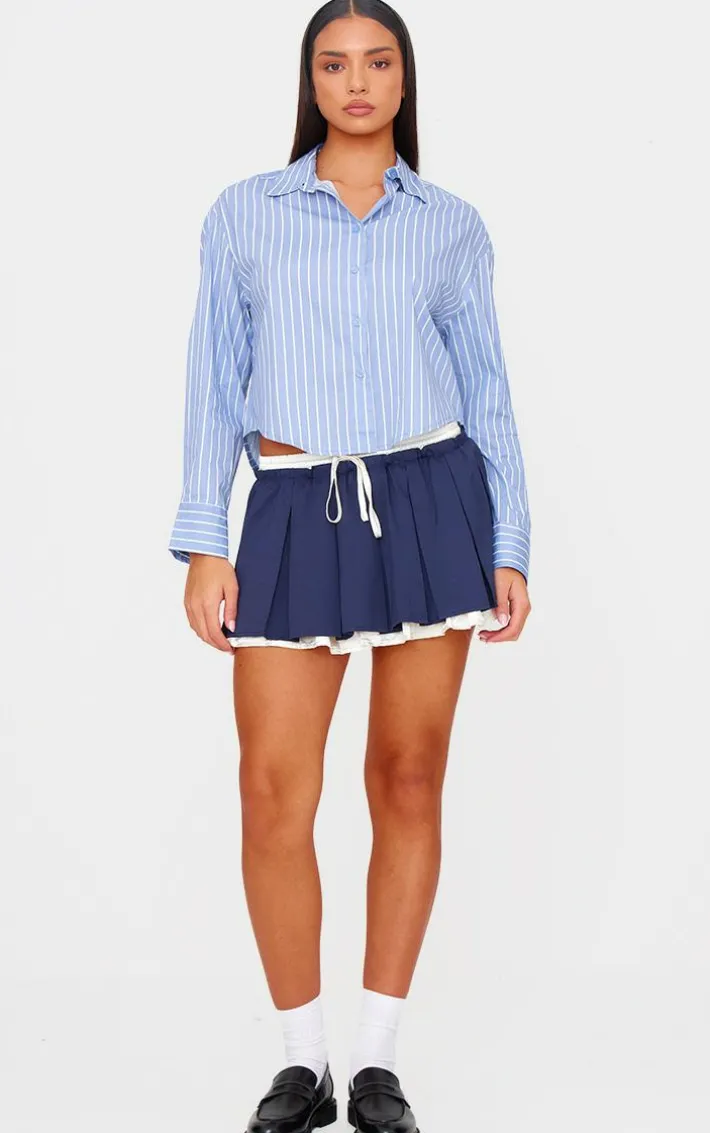 Keep it effortlessly chic with this blue striped contrast collared shirt. Brought to you in a blue material with a striped design and a contrast collar detail, you are sure to be the best dressed in every room. Pair with a mini skirt and some gold accessories for a look like no other.