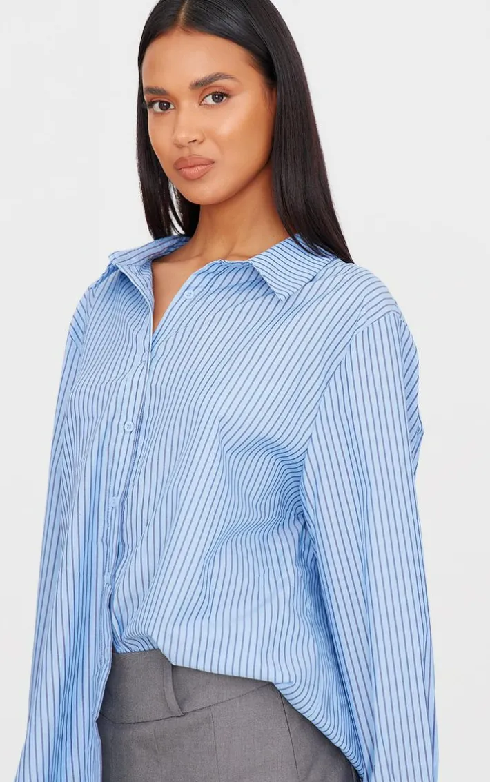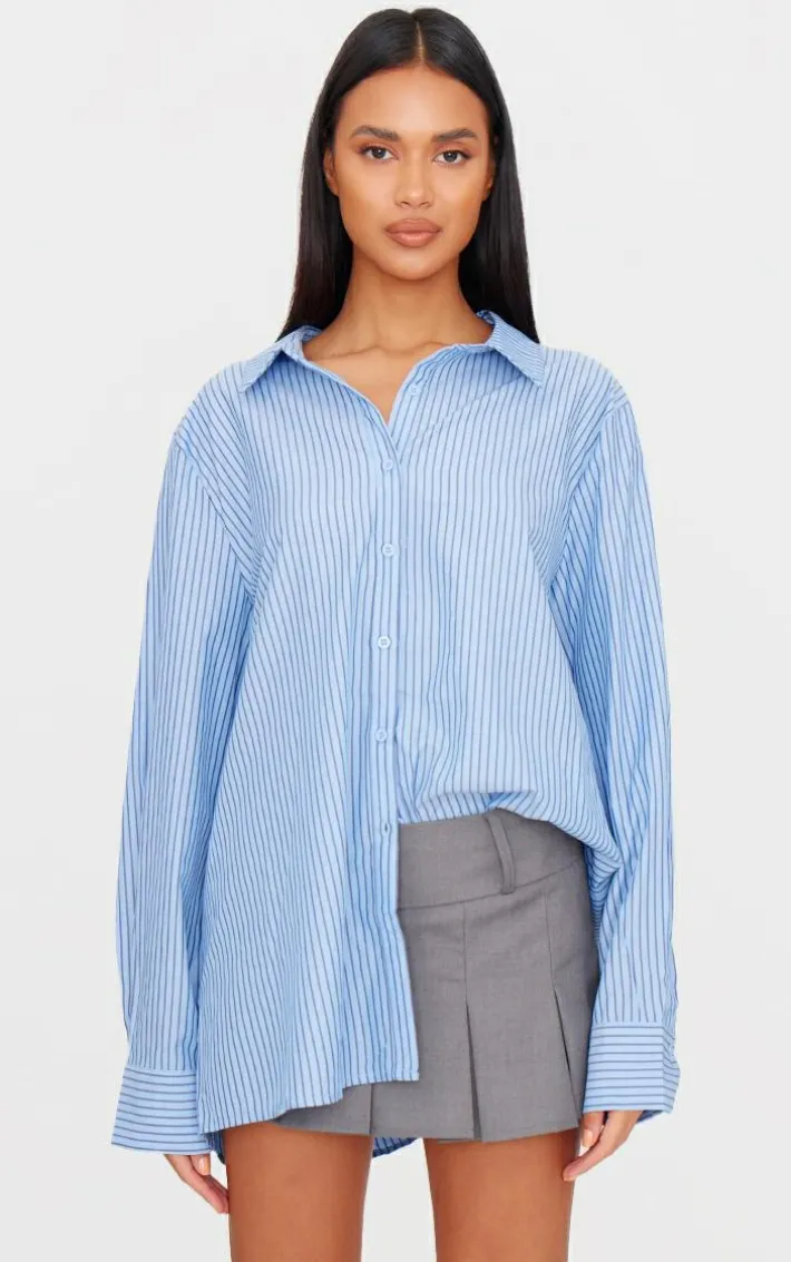 Channel those effortlessly cool vibes with this blue striped oversized shirt. Brought to you in a blue material with a striped design and oversized fit, it’s a must-have, versatile piece for your wardrobe. Team with some shorts, chunky loafers and your fave bag for an off-duty look like no other.