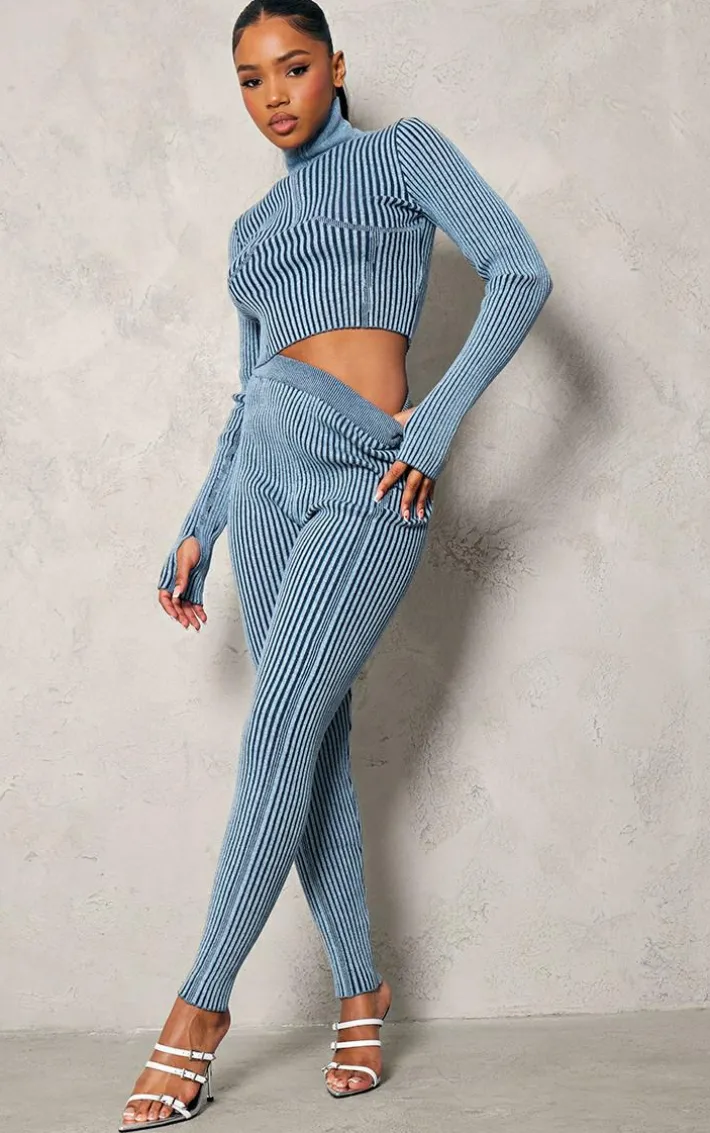 Keep it comfy with these blue two tone chunky rib knit leggings. Brought to you in a blue chunky rib knit material with a two tone design, what’s not to love? Its comfy and flattering fit is all you need to feel confident. Team with the matching crop top and a pair of clear heels for an insta worthy finish.
