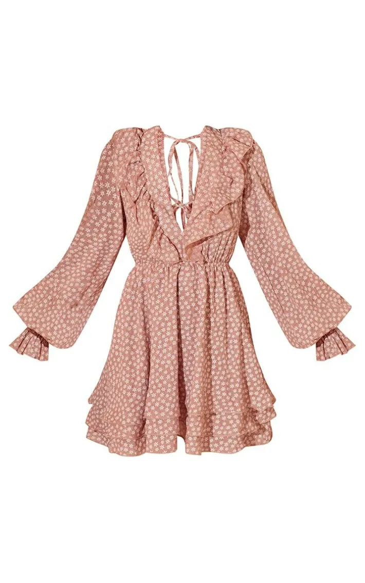 This dress is perfect for the warmer days and beyone. Featuring a blush floral chiffion material with a ditsy design and a tie back detail, we’re obsessed. Style with a mini bag, heels and gold accessories for the perfect combo..