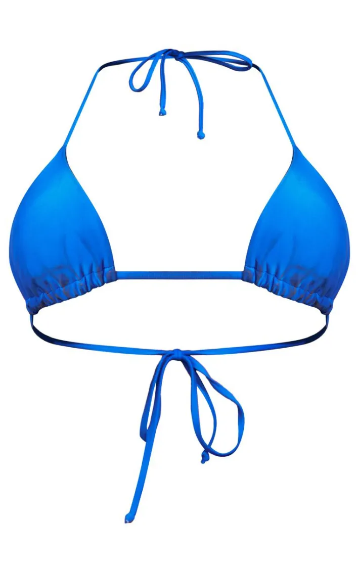 Stay true to blue this season with this statement bright blue mix and match triangle bikini top, you won’t be able to resist. This bikini top features a bright blue material with a triangle cup design and a figure-flattering fit, what more could you want? Simply add matching bikini bottoms and your go to accessories for a the perfect poolside fit.