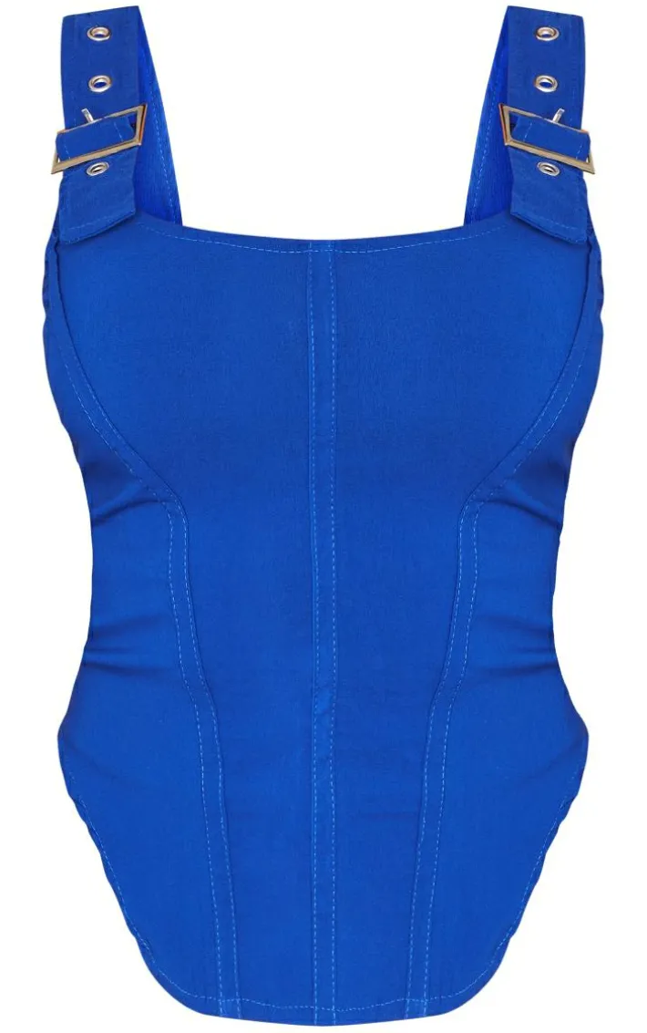 Add some drama to your date night look with this bright blue woven buckle strap boned corset. Brought to you in a bright blue woven material with a buckle strap, what’s not to love? Its boned detailing is all you need to stand out from the rest. Simply style with a mini skirt and your fave accessories for a fool proof finish.