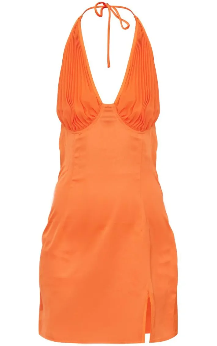 Be sure to stand out from the crowd in this bright orange satin pleated bust detail halter shift dress. Brought to you in a bright orange satin material that’s giving us all the luxe vibes, we are obsessed. With a halterneck design, pleated bust detailing and a shift style, you really can’t go wrong with this satin dress. Just add your fave heels and gold accessories for a weekend look to be remembered.